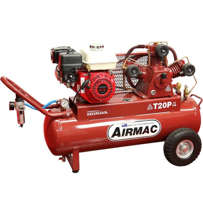 Tags: Air Compressors, Petrol Air Compressors, AIRMAC, AIRMAC 6.5hp 70l 320 L/Min Honda Petrol Air Compressor AM T20P-H