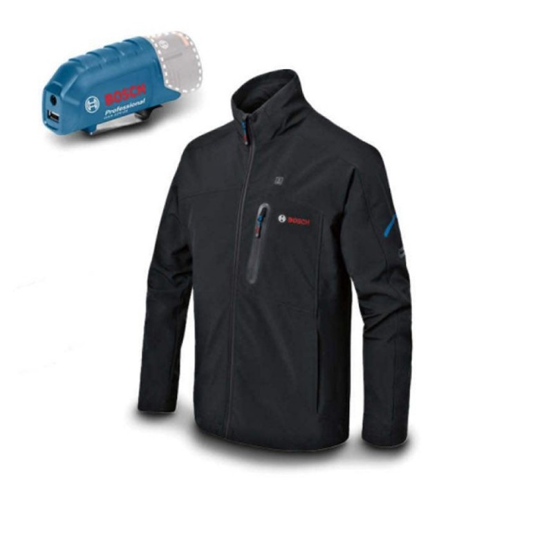 The jacket?s heating pads are powered by the included GAA 12V-21 charging adapter and 12 V battery from Bosch or, optionally, by the GAA 18V-24 charging adapter and 18 V battery from Bosch (not included).